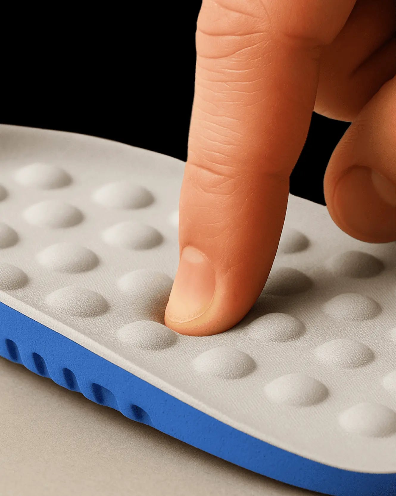 The top layer features tiny spherical nodes that gently massage your heel with every step. This micro-movement stimulates blood flow, reduces stiffness, and helps you feel active relief even when you’re standing still.